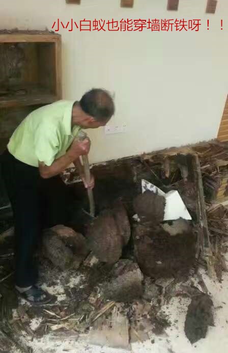 地址:廣東省珠海市香洲區(qū)胡灣路72號(hào).敲開客廳墻角,隔熱板已經(jīng)被掏空,成千上萬的白蟻不斷啃噬著木頭,儼然一個(gè)個(gè)小小的白蟻王國。近日,珠海市恒建白蟻蟲鼠防治有限公司技術(shù)人員李師傅在御龍山莊某別墅關(guān)女士家中見到這幅景象也頗為吃驚。大概4平方米的墻體已經(jīng)被白蟻占據(jù),估計(jì)有數(shù)十萬只白蟻。 “從事滅蟻工作二十年的李師傅還是頭一次見到這么大的白蟻巢,估計(jì)得有200多斤重?!毙液冒l(fā)現(xiàn)及時(shí),如果再發(fā)展下去,對(duì)整幢別墅的影響將會(huì)是破壞性的。屋主關(guān)女士介紹說,往年每到春末夏初的時(shí)候,家里就莫名其妙的跑出許多小飛蟲,而且數(shù)量龐大,大多趴在墻上,飛的時(shí)候還會(huì)有翅膀掉下來,用了許多殺蟲劑,結(jié)果效果一直不是很好。一家人被小飛蟲給折騰的十分難受,甚至有搬走的想法。“前些日子,小飛蟲又出現(xiàn)了,而且比往年的多出了一倍,有經(jīng)驗(yàn)街坊告訴關(guān)女士可能是白蟻?zhàn)魉??!庇谑顷P(guān)女士撥打了本公司電話尋求幫助,接到電話公司技術(shù)人員李師傅第一時(shí)間趕到現(xiàn)場(chǎng),經(jīng)過現(xiàn)場(chǎng)勘查發(fā)現(xiàn)“元兇”—一大家子的白蟻?!斑@種白蟻個(gè)頭不大,大約1厘米長,翅翼較長,乳白色,橢圓形。但數(shù)以萬計(jì)的白蟻同時(shí)飛出來,造成的視覺沖擊可想而知?!崩顜煾到榻B說,關(guān)女士家客廳這面墻有塊防水層,防水板是木質(zhì)的。最近這些天天氣變化較頻繁,加上適宜的氣溫,就為這些白蟻提供了很好的繁殖環(huán)境,于是白蟻就出來了。對(duì)于家中的木質(zhì)裝潢造成一定的影響,但它不會(huì)攻擊人類。同時(shí),市民發(fā)現(xiàn)白蟻后,不要盲目使用殺蟲劑噴殺,不要隨意搬動(dòng)被白蟻危害的物品或破壞蟻路、蟻巢,否則會(huì)使白蟻四處逃散,造成蟻害面積擴(kuò)大,從而增加滅治的難度,應(yīng)妥善保護(hù)好白蟻危害現(xiàn)場(chǎng),及時(shí)與專業(yè)白蟻防治單位聯(lián)系進(jìn)行滅治。